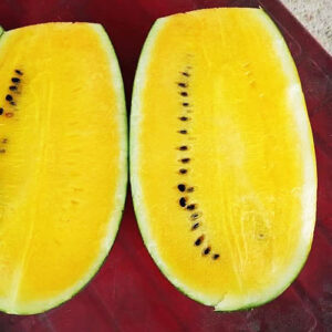 Dưa hấu ruột vàng có nguồn gốc từ Châu Phi, thuộc họ bầu bí có vị ngọt cao gấp 3 lần, dày thịt, ít hạt, thơm nhẹ. Dưa hấu ruột vàng có vỏ mỏng hơn so với nhiều loại dưa hấu truyền thống, ruột vàng ươm, vị ngọt đậm, ít hạt.